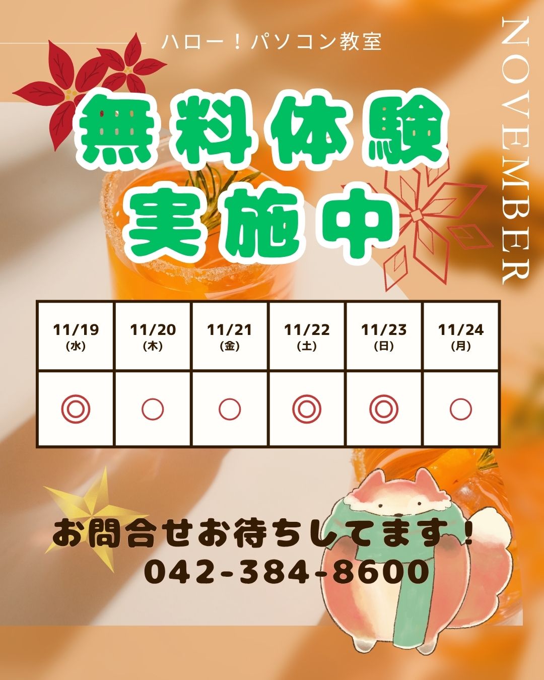 小金井・立川 パソコン教室 無料体験実施中! 学生のうちに習得!
